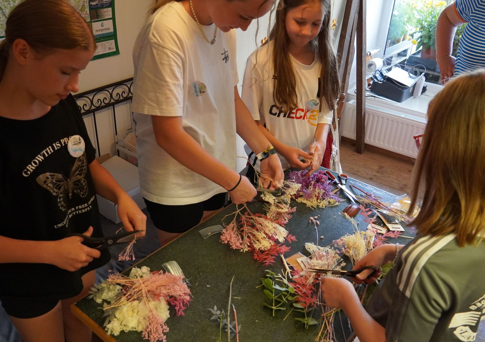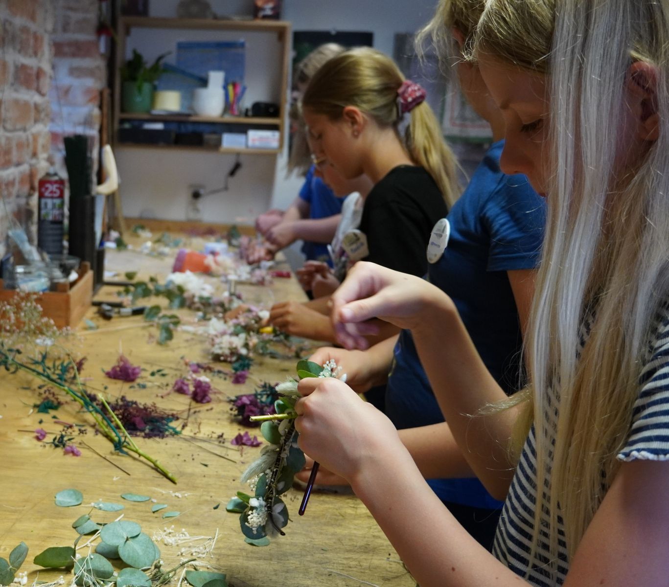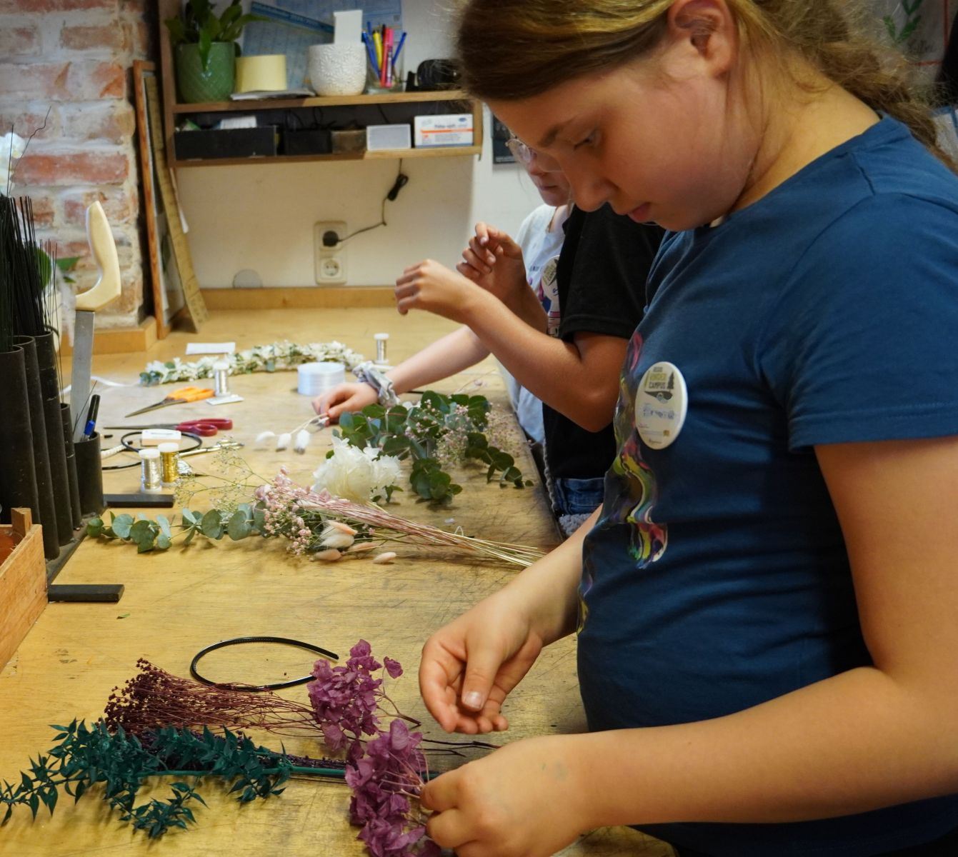 🌼 Die RegioKinderCampus- Kids wählten schließlich frische Blumen oder Trockenblumen, farblich passend zur Volksfest- Garderobe. 😀Hortensie, Eukalyptus, u.ä. kamen zum Einsatz. Da waren alle fröhlich und eifrig bei der Sache und Tanja Obermeier musste manchmal ein wenig bremsen.. „Ihr werd’s z‘ dick!!“ 🤣 .. dass sie damit die Kränzchen gemeint hat und nicht die Kinder, das wollen wir ihr mal glauben 😇😉 und kommen gerne wieder! 💐